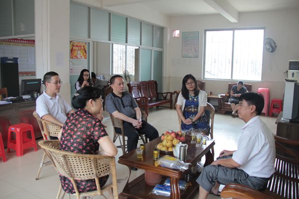扶贫慰问第二组成员与村干部交谈
