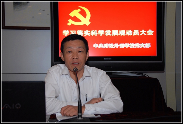 外校党支部书记王秀民就学校如何深入贯彻实践科学发展观提出具体方案和要求。王秀民阐述了学习实践科学发展观的重要意义、指导思想和目标原则,并对每一阶段的任务要求进行了具体部署。她指出:“我们要深刻认识开展学习实践活动的重要性和必要性,把开展学习实践活动作为我们应对挑战、解决矛盾、统一思想的重大契机,积极投入到学习实践活动中来。”