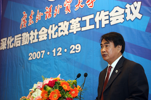 彭说龙首先表达了他对于本次会议的召开的激动的心情,认为广外召开的这次会议走在广东省的前列。接着,他对深化后勤社会化改革的必要性和难点进行了分析。
