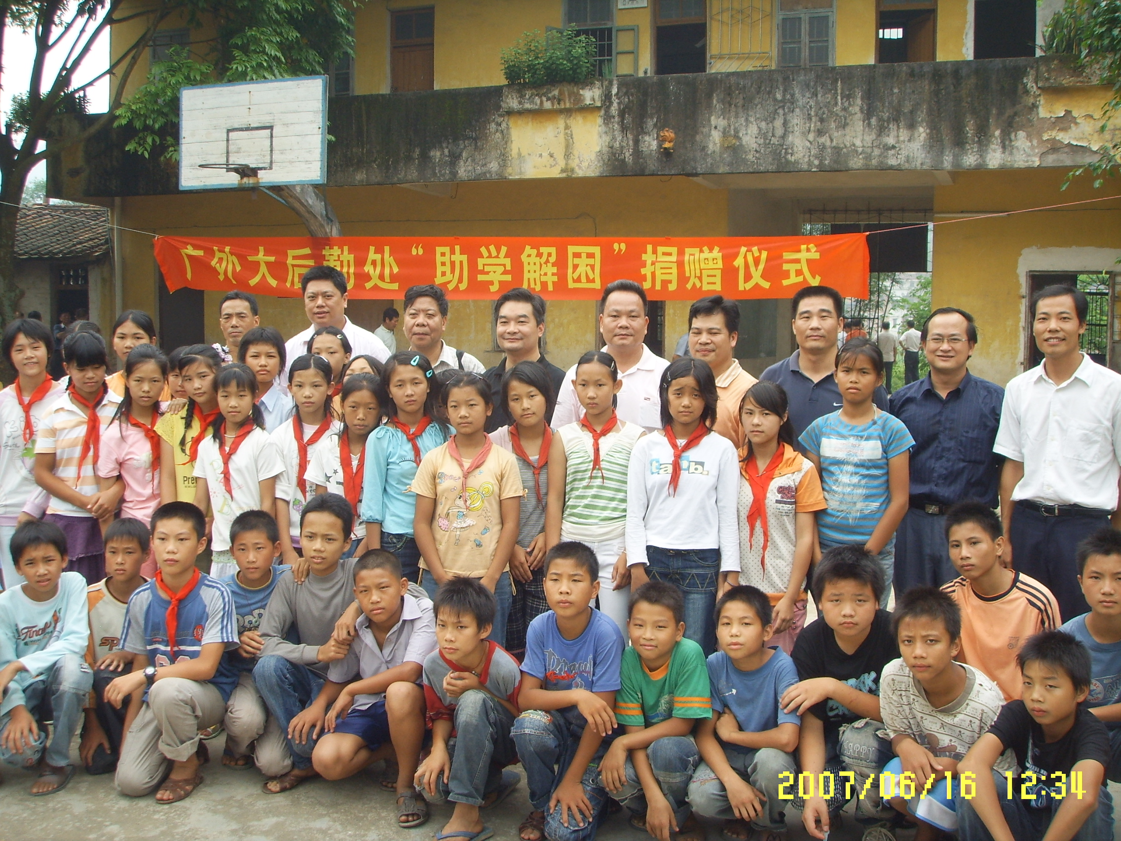 王斌详细了解村党支部建设经验及伟德bv国际体育第三批工作组的工作情况,并慰问了讴坑村党支部。随后,到讴坑村小学举行“广外大后勤处助学解困捐赠仪式”,虽是周六,但是小学师生纷纷回到学校,对后勤处党支部一行的到来表示热烈的欢迎。王斌介绍了广外大后勤处的基本情况及来到讴坑小学的目的,并勉励同学们好好学习,报考广外大。
