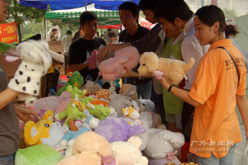 现场,许多女同学捐出了自己心爱的公仔。负责人谈到,最令他感动的是,不少同学从“梦想飞扬”社区摊位买来公仔后,就直接捐给他们了,其中不乏魁梧男生的身影。