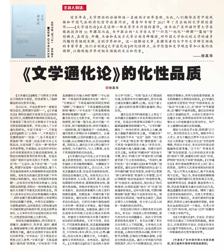 中国社会科学报:徐真华撰文《文学通化论》的化性品质