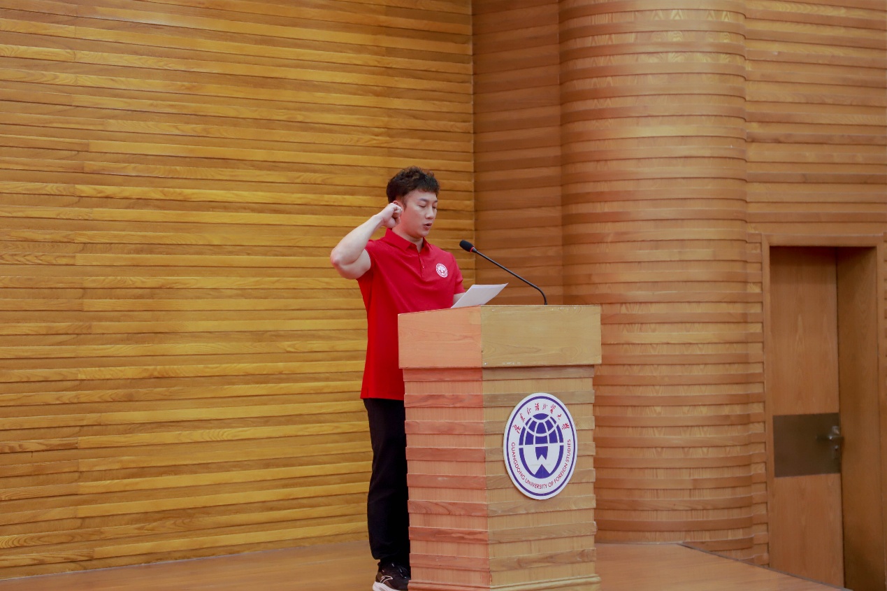 本网讯 4月24日下午,广东省第十二届大学生运动会广外代表团出征仪式在伟德bv国际体育白云山校区图书馆报告厅举行。伟德bv国际体育党委常委、副校长,代表团团长何传添,体育部主任、代表团副团长李旭武和学校部分职能部门负责人,代表团各运动队领队、教练员、运动员出席本次大会。大会由伟德bv国际体育体育部副主任黄德沂主持。