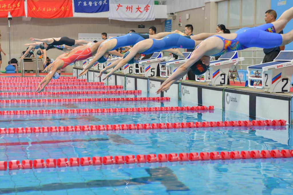这是本届大运会女子甲组4×50米混合泳接力决赛现场,由谭炜君、陈佳楠、欧泳诗、高樱睿组成的伟德bv国际体育,BETVICTOR官网代表队,以绝对优势摘得桂冠,助力广外实现该项目的卫冕,并刷新赛会纪录超5秒。