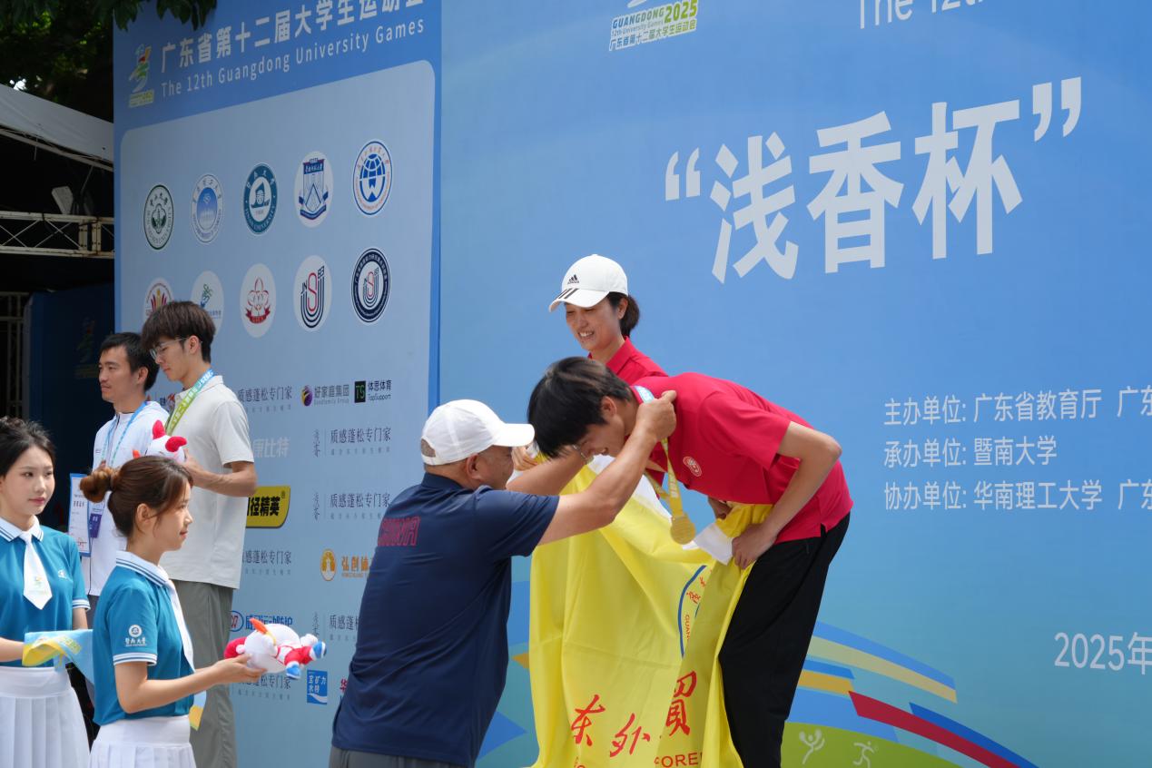 教练为蔡汝轩佩戴金牌