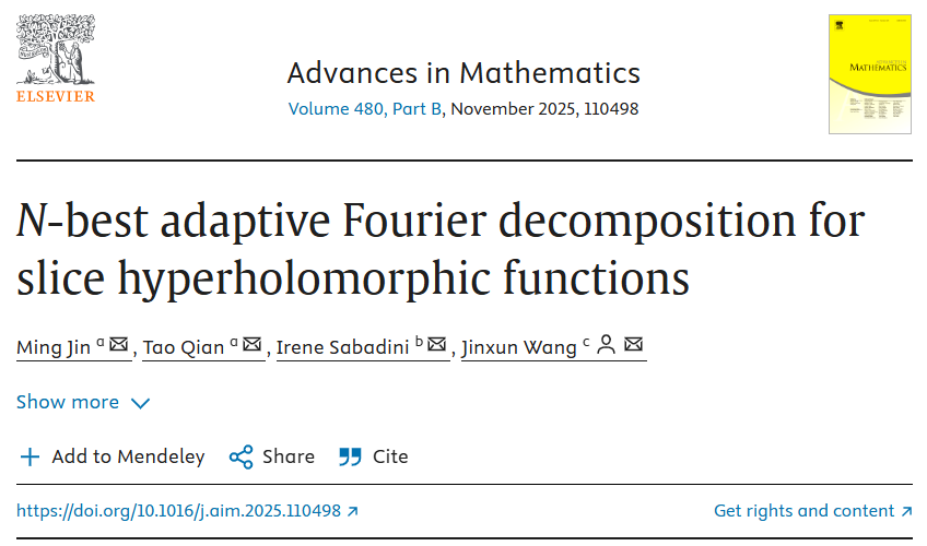 2025-09-25 数统学院教师在国际顶尖数学期刊发表重要研究成果本网讯近日,数学与统计学院王晋勋教授与澳门科技大学金铭教授、钱涛教授以及米兰理工大学IreneSabadini教授合作完成的论文《N-bestadaptiveFourierdecomposit… [详细]