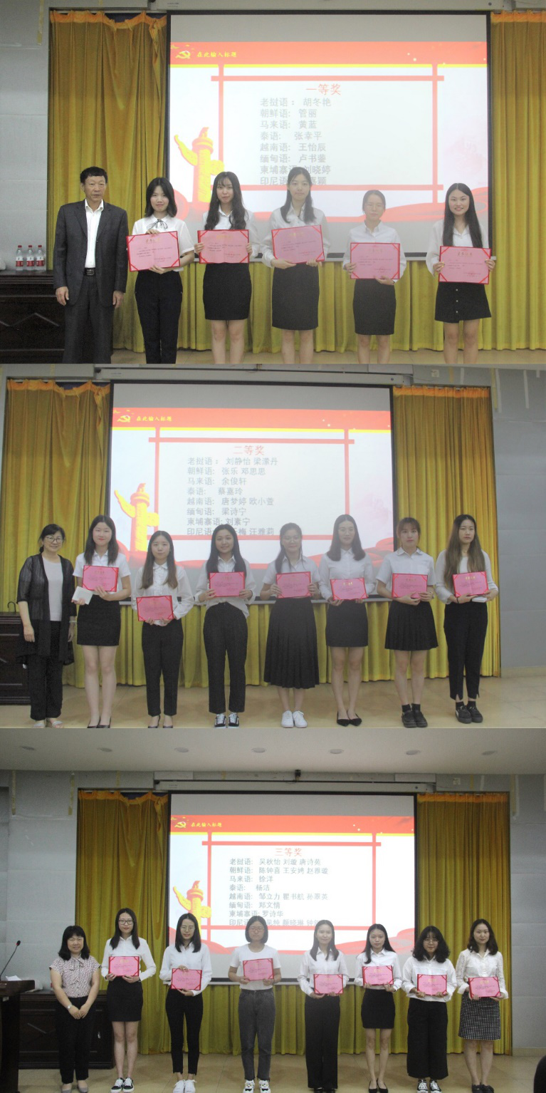 2019-04-15 东语学院举行翻译大赛颁奖暨党建讲座活动本网讯 4月11日晚上,东语学院举办了“筑梦爱国,同心同译”爱国主义思想翻译大赛颁奖典礼和《青年的理想信念和责任担当》讲座。 [详细]