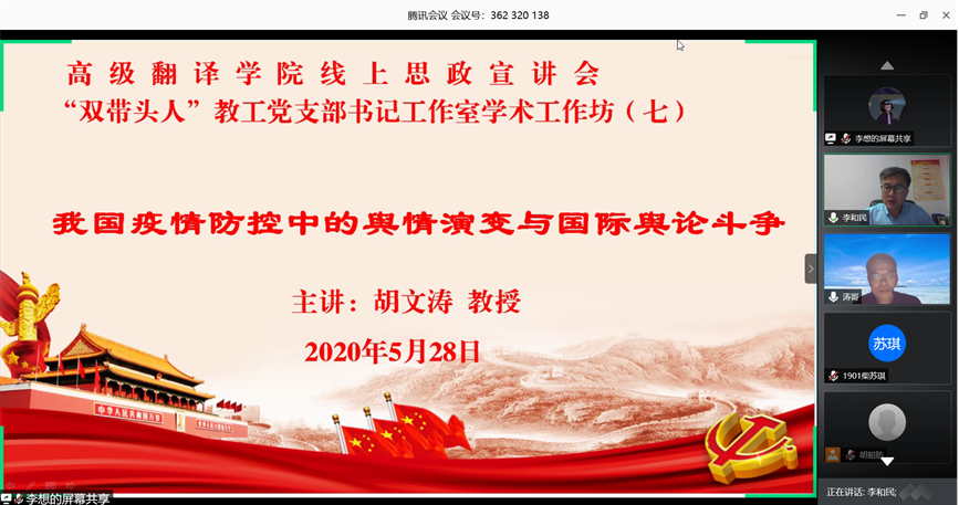 2020-06-15 【思政宣讲】东语学院、国际学院开展线上思政宣讲编者按:为深入学习贯彻习近平总书记关于应对新型冠状病毒肺炎疫情重要讲话精神,在常态化疫情防控中稳步推进学校各项工作有效开展,按照学校党委统一部署,近… [详细]