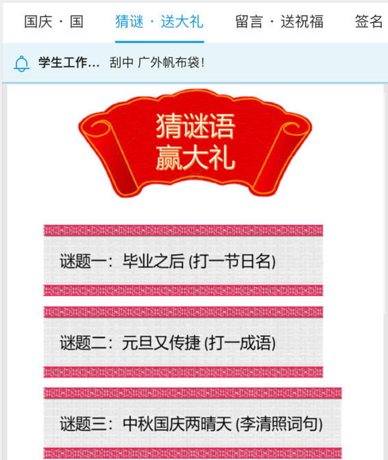 2020-10-05 伟德bv国际体育举办“迎国庆•贺中秋”游园活动本网讯为庆祝国庆、中秋双节,丰富同学们的假期生活,进一步弘扬中华优秀传统文化,增强文化自信,9月30日晚,学生工作部(处)面向全校师生在广外易班网,北… [详细]