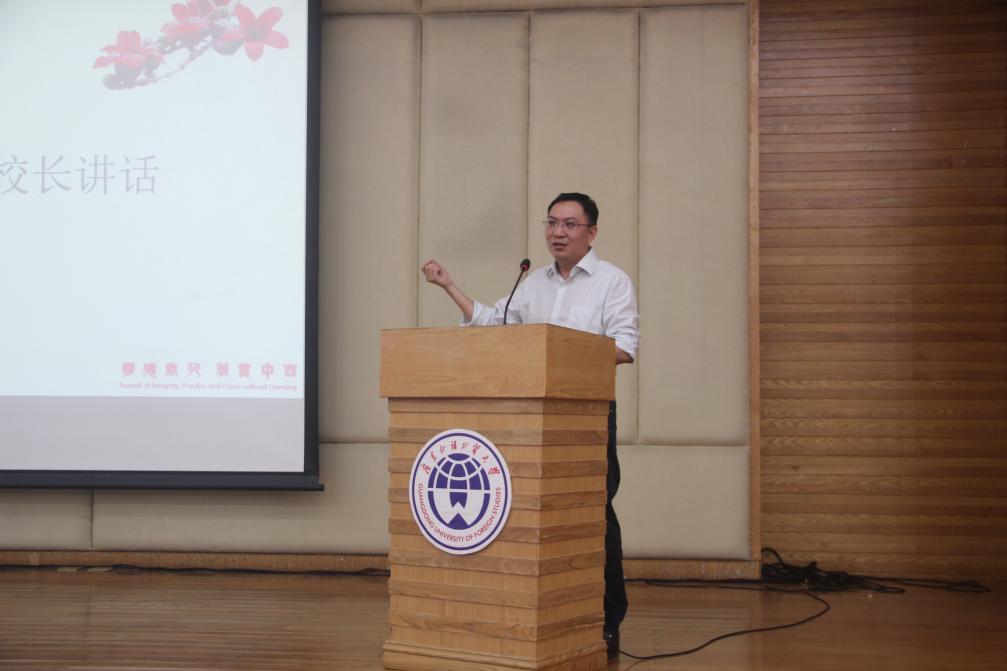 2021-04-07 国际关系学院党史学习教育动员会“让历史照亮未来”本网讯4月2日,让历史照亮未来——国际关系学院党史学习教育动员部署暨专题宣讲会于南校区举行。学校关工委主任冯益谦作专题报告,国际关系学院党总支书记袁薇… [详细]