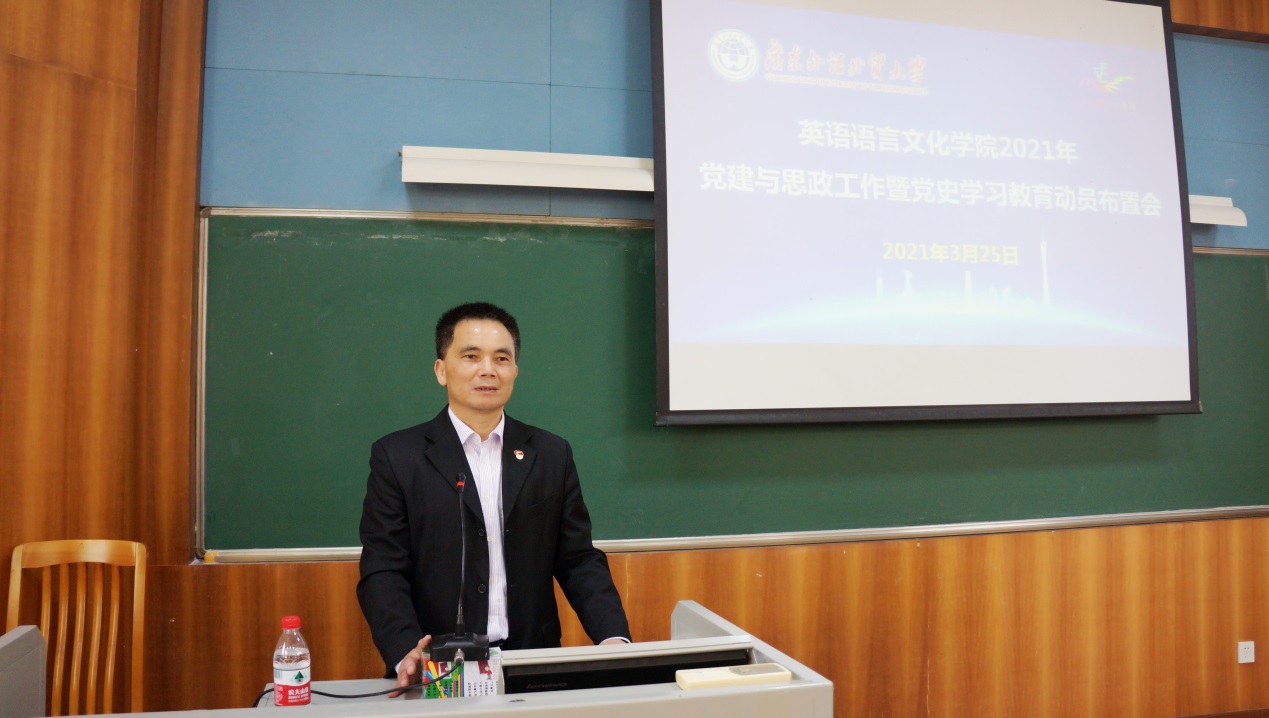 2021-04-06 英文学院召开党史学习教育动员布置会本网讯3月25日下午,英文学院2021年党建与思政工作暨党史学习教育动员布置会在北校区七教107教室召开。会议由学院党委书记林绍雄主持、主讲,学院党委委员,全… [详细]