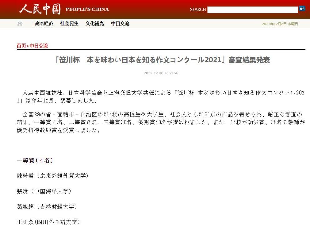 2021-12-09 伟德bv国际体育学子获2021“笹川杯”征文大赛一等奖本网讯由人民中国杂志社、日本科学协会和上海交通大学共同主办的2021笹川杯“品书知日本征文大赛”日前闭幕。伟德bv国际体育日语语言文学专业研究生二年级学生陈绮雪获一… [详细]