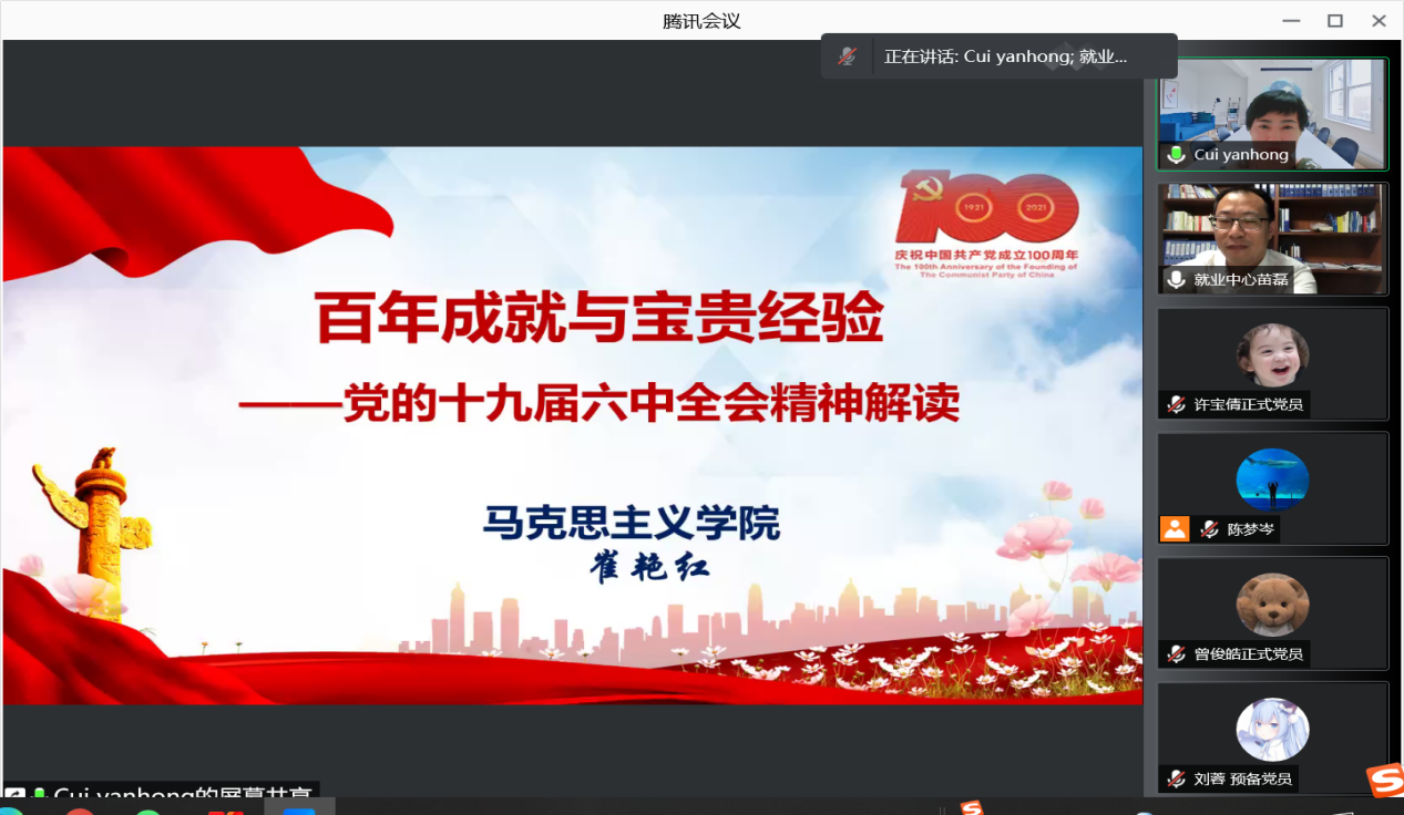 2022-01-20 【党史宣讲】就创党支部与共建学生党支部联合学习党的十九…本网讯为深入学习贯彻党的十九届六中全会精神,引导党员汲取奋进的智慧和力量,学生就业指导中心、创新创业教育学院党支部与英文学院英语语言学和翻译方向学生… [详细]