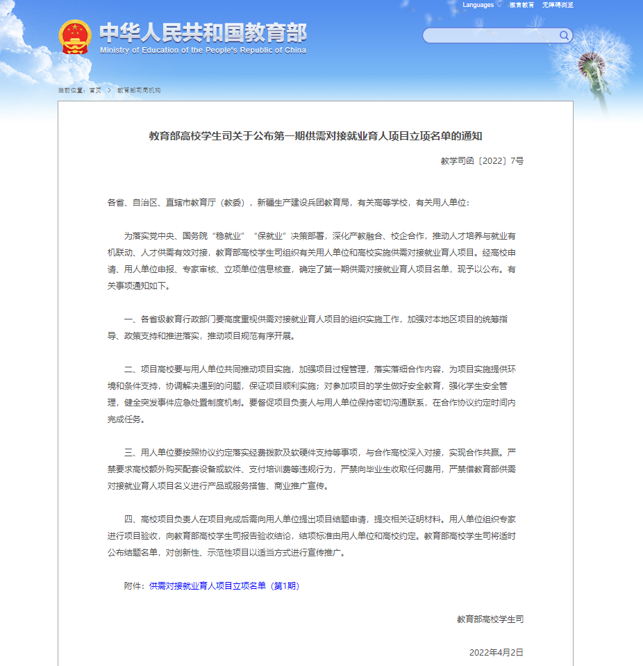 2022-04-13 伟德bv国际体育7项目入选教育部一期供需对接就业育人项目立项名单本网讯近日,教育部高校学生司公布第一期供需对接就业育人项目立项名单,伟德bv国际体育共有7个项目入选。教育部公布第一期供需对接就业育人项目立项名单本次供需对接育… [详细]