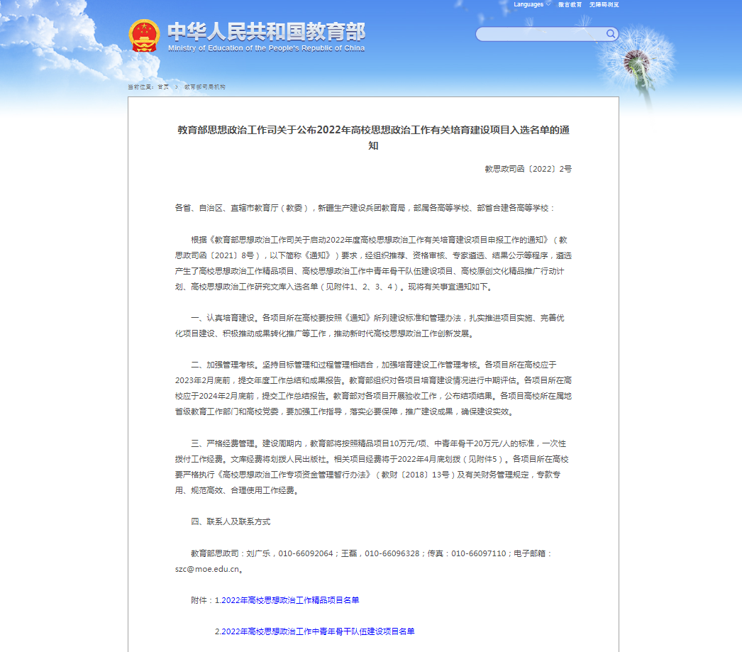2022-04-11 伟德bv国际体育获批教育部高校思政工作精品项目本网讯近日,教育部思想政治工作司发布了《教育部思想政治工作司关于公布2022年高校思想政治工作有关培育建设项目入选名单的通知》。伟德bv国际体育由学生工作部(处)申… [详细]