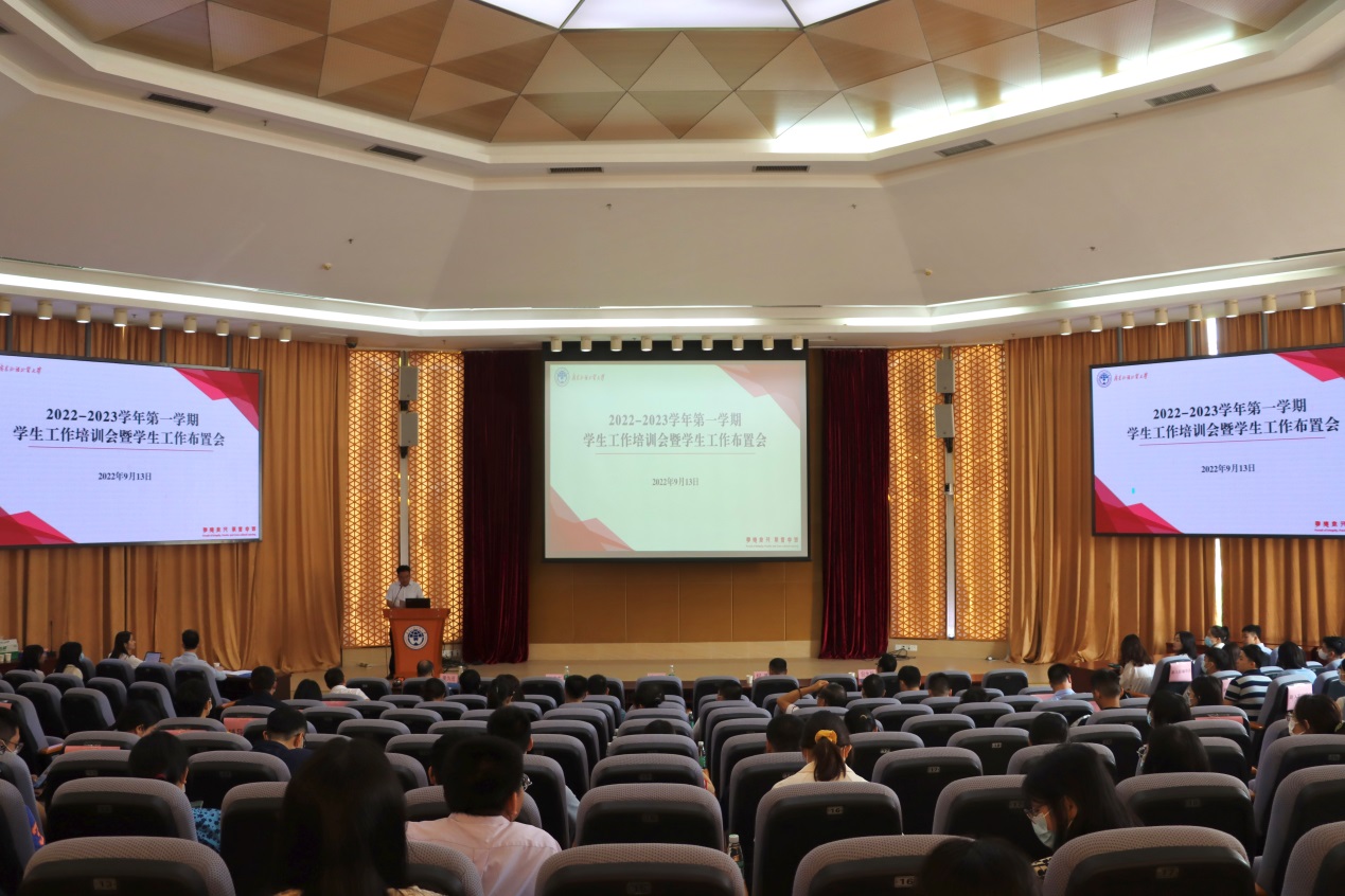 2022-09-16 学生工作布置会聚焦提质创新本网讯9月13日,2022-2023学年第一学期学生工作布置会在大学城校区八角楼会议室召开,校党委副书记唐锐出席并讲话。学生工作部(处)、校团委、学生就业指导中… [详细]