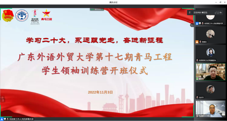 2022-11-08 第十七期“青马工程·学生领袖训练营”开班本网讯为深入学习宣传贯彻党的二十大精神,落实习近平总书记关于青年工作的重要思想,在青年大学生当中着力培养一批敢想敢为又善作善成的青年学生领袖,近日,… [详细]