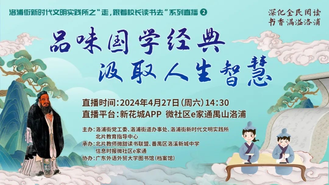 2024-04-30 图书馆受邀参加洛浦街新时代文明实践直播活动本网讯4月27日下午,番禺区洛浦街新时代文明实践之“走,跟着校长读书去”第2期直播活动举行。本期节目邀请到洛溪新城中学校长、党总支书记廖永生作为主讲嘉宾… [详细]