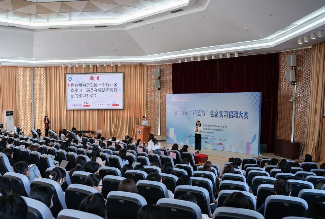 2024-05-21 “精英节”名企实习招聘大赛举行 千余名学生参与本网讯5月16日下午,由学生就业创业中心主办的2024年第十九届精英节名企实习招聘大赛在大学城校区八角楼顺利举办。本届大赛合作单位有德勤、广汽国际、毕马威… [详细]