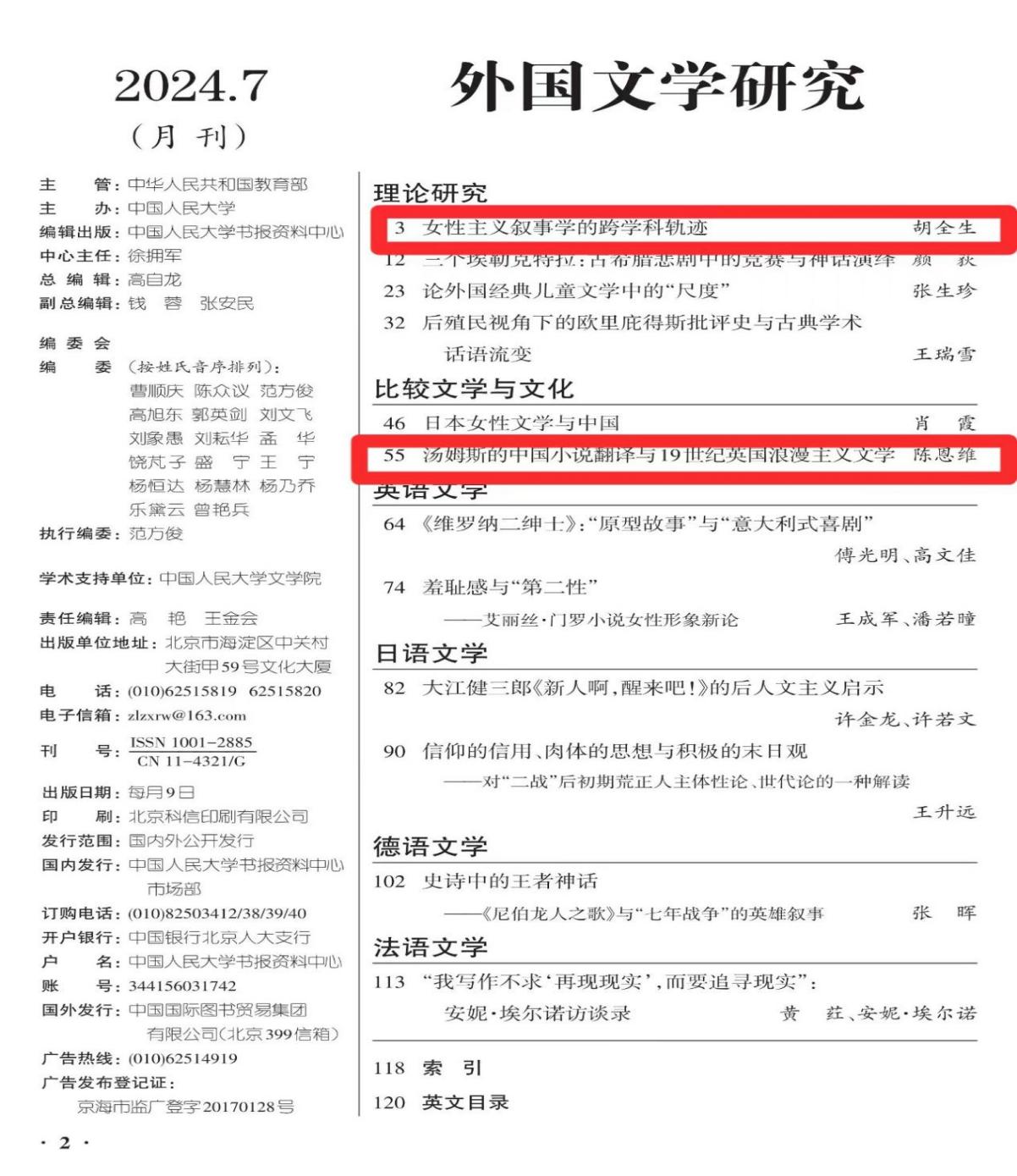 2024-07-09 《伟德bv国际体育,BETVICTOR官网学报》人大复印资料全文转载量和索引量…本网讯近日,《伟德bv国际体育,BETVICTOR官网学报》多篇文章受到人大复印资料《外国文学研究》全文转载和索引。上海交通大学胡全生教授发表于学报2024年第1期的文章《女性… [详细]