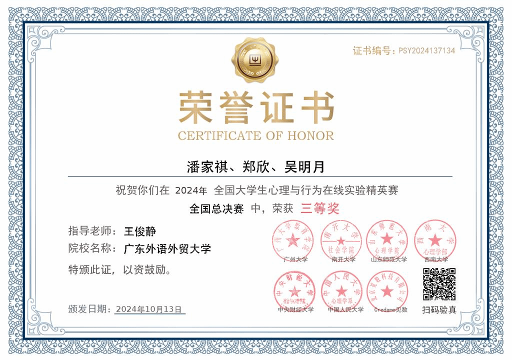2024-10-24 伟德bv国际体育学子在全国大学生心理与行为在线实验赛中获三等奖本网讯近日,第二届全国大学生心理与行为在线实验精英赛总决赛成功举办。由潘家祺、郑欣、吴明月组成的“好上加好”队伍,在伟德bv国际体育公管学院副教授王俊静指导下,… [详细]