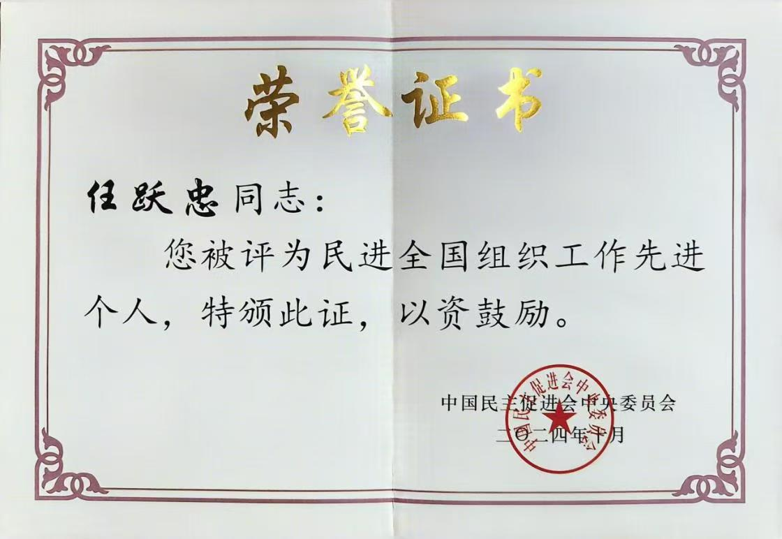 2024-11-04 任跃忠、杨桦获民主党派中央表彰本网讯近日,民进全国组织工作会议、中国致公党组织工作会议暨基层组织建设经验交流会先后召开。民进中央、致公党中央分别对组织工作先进集体及个人进行表彰。… [详细]