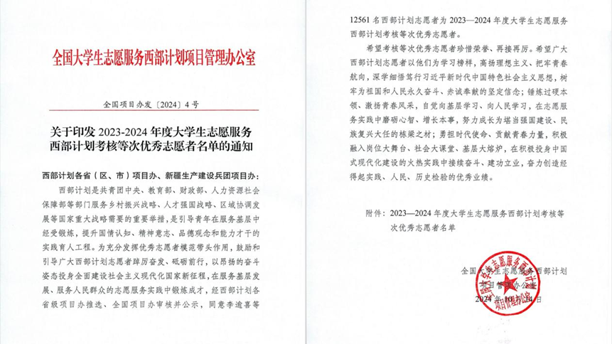 2024-11-20 伟德bv国际体育8名西部计划志愿者荣获全国考核优秀等次本网讯近日,西部计划全国项目办印发了《关于印发2023-2024年度大学生志愿服务西部计划考核等次优秀志愿者名单的通知》,经西部计划各省级项目办推选、全国项… [详细]