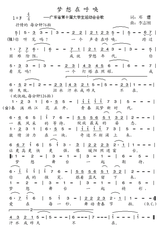 2019-05-06 广东省第十届大学生运动会会歌公布会歌《梦想在呼唤》 [详细]