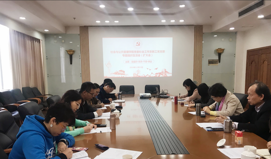 2018-12-20 【爱国奋斗】公管学院召开专题组织生活会本网讯 12月19日,社会与公共管理学院社会工作系教工党支部召开主题为“党组织·党员·干部·事业”的专题组织生活会(扩大会)。 [详细]