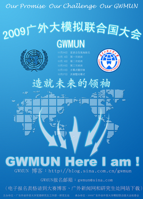 主题: 2009广外模拟联合国大会(2009GWMUN)宣讲会时间: 2009年11月26日(周四)下午3:00地点: 北校区六教B314主讲人:赵南(2008年广外模拟…